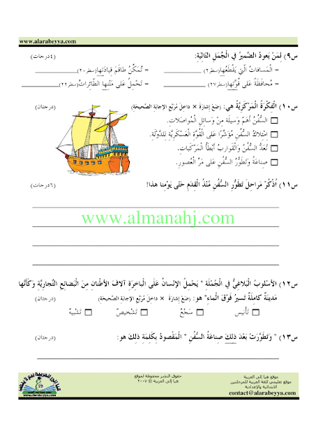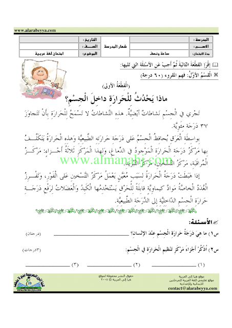 معلومات الملف: الصف السادس, الفصل الثاني, لغة عربية, 2018-2019, امتحان ثاني ـ الفهم والاستيعاب | |||