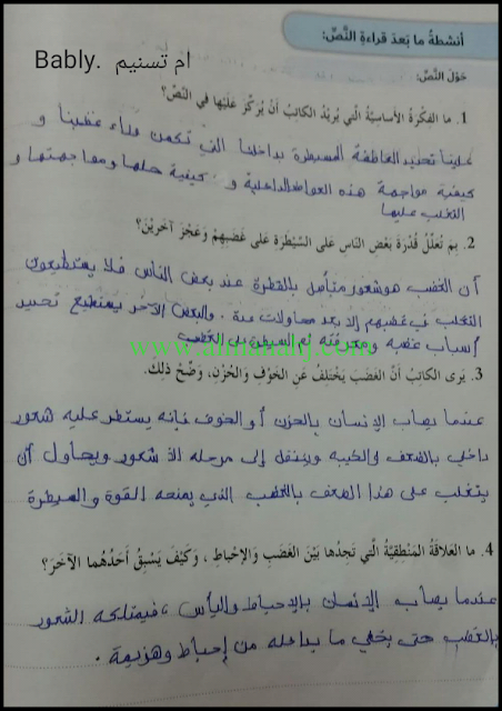 اضغط هنا لتحميل وعرض ( حل درس كن اكثر وعيا بغضبك ) |