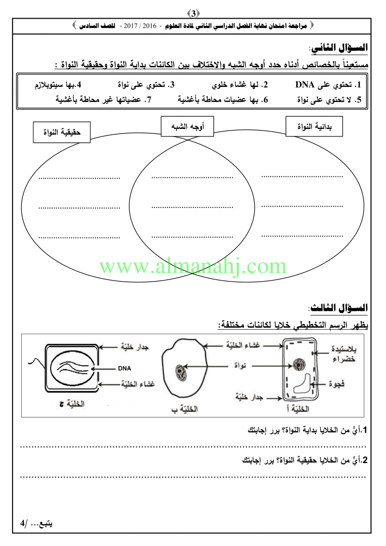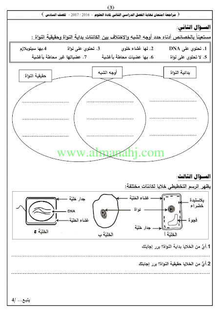 معلومات الملف: الصف السادس, الفصل الثاني, علوم, 2018-2019,نموذجلامتحان نهاية الفصل الثاني لعام 2016-2017 | |||