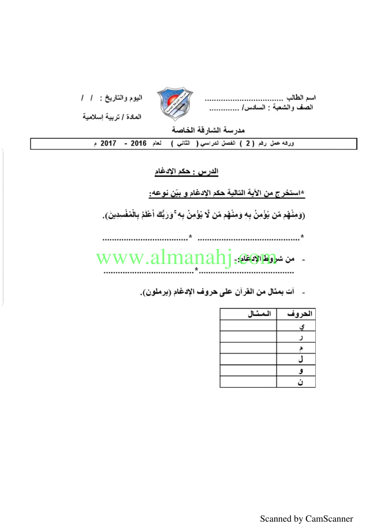 معلومات الملف: الصف السادس, الفصل الثاني, تربية اسلامية, 2018-2019, اوراق عمل ملف مكون من 4 صفحات | |||