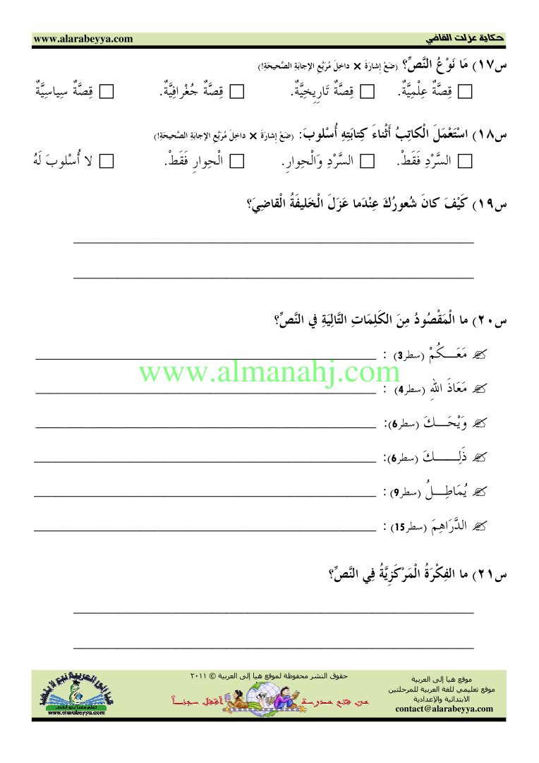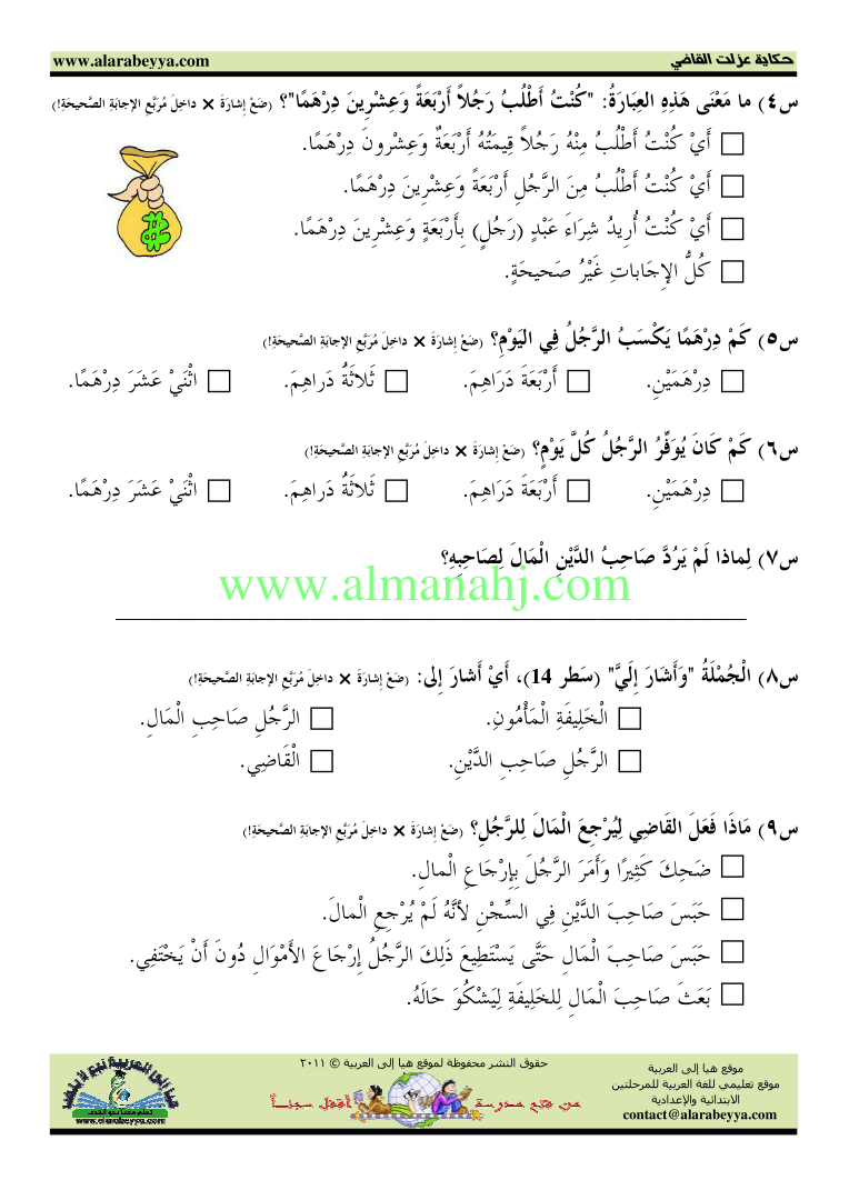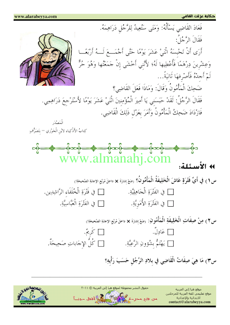 معلومات الملف: الصف السادس, الفصل الثاني, لغة عربية, 2018-2019, القاض البخيل | |||