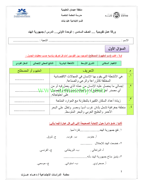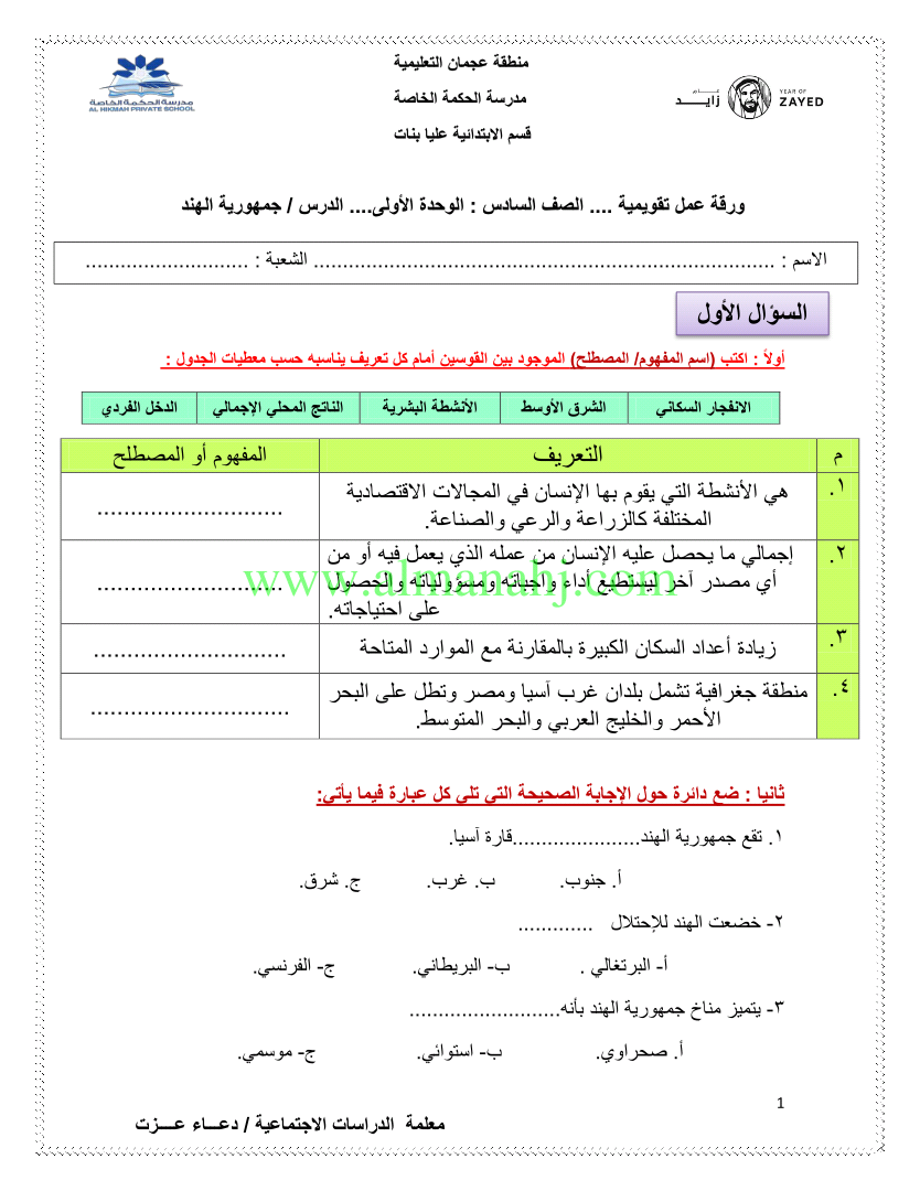 معلومات الملف: الصف السادس, الفصل الثاني, اجتماعيات, 2018-2019, جمهورية الهند ملف ثاني | |||
