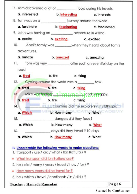 معلومات الملف: الصف السادس, الفصل الثاني, لغة انكليزية, 2018-2019, حل uint 6 | |||
