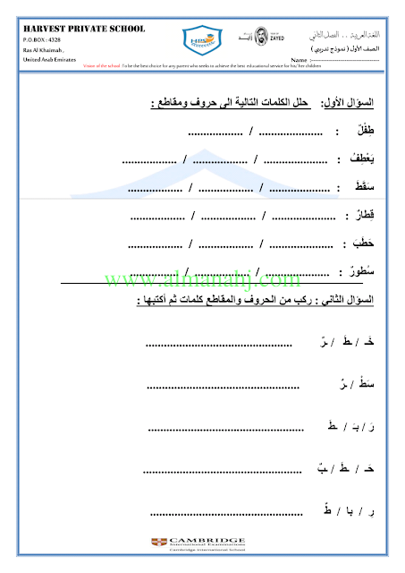 معلومات الملف: الصف الأول, الفصل الثاني, لغة عربية, 2018-2019,نموذجتدريبي ملف مكون من 5 اوراق | |||