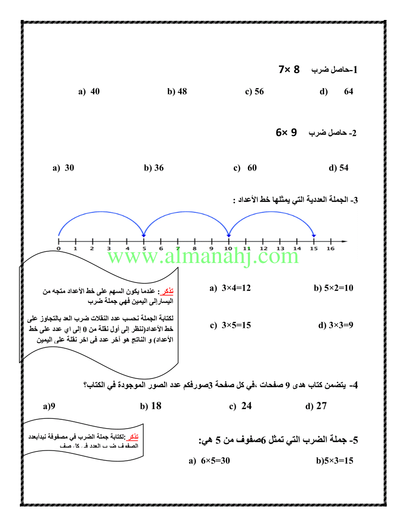 معلومات الملف: الصف الثالث, الفصل الثاني, رياضيات, 2018-2019, مذكرة مراجعة وتقوية للفصل الثاني 2018 ملف مكون من 29 ورقة | |||