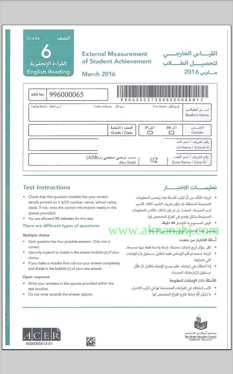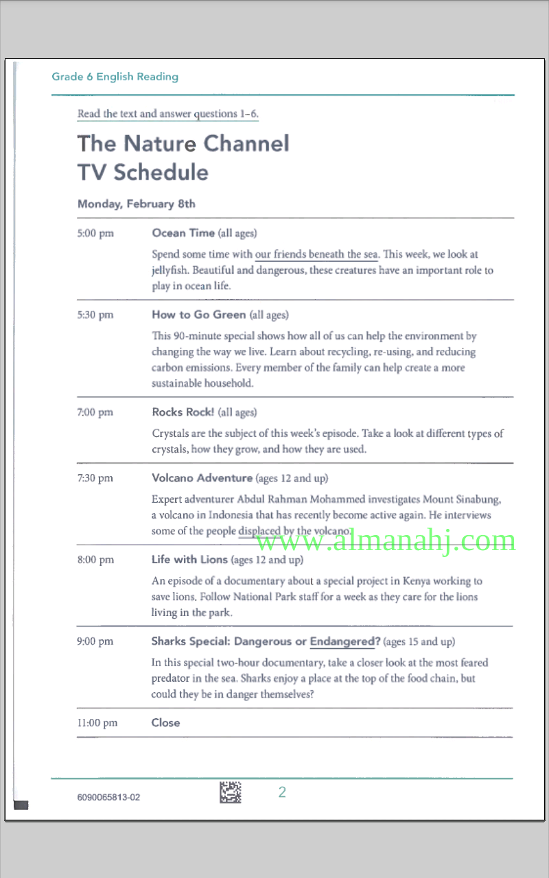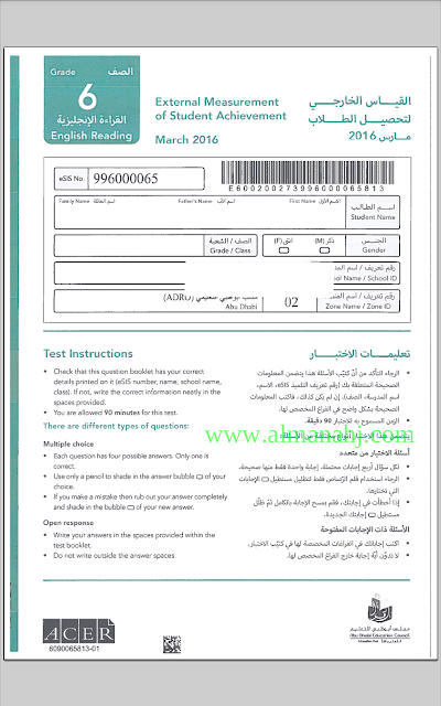معلومات الملف: الصف السادس, الفصل الثاني, لغة انكليزية, 2018-2019, الاختبار القياسي للقراءة 2016 | |||