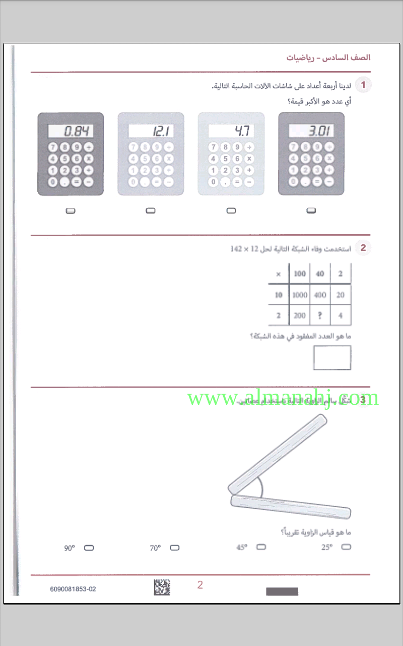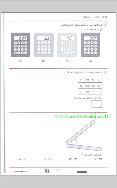 معلومات الملف: الصف السادس, الفصل الثاني, رياضيات, 2018-2019, الاختبار القياسي 2016 | |||