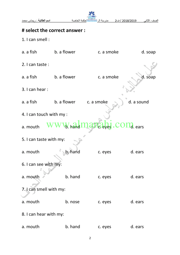 معلومات الملف: الصف الثاني, الفصل الثاني, لغة انكليزية, 2018-2019, اوراق عمل uint 6 | |||