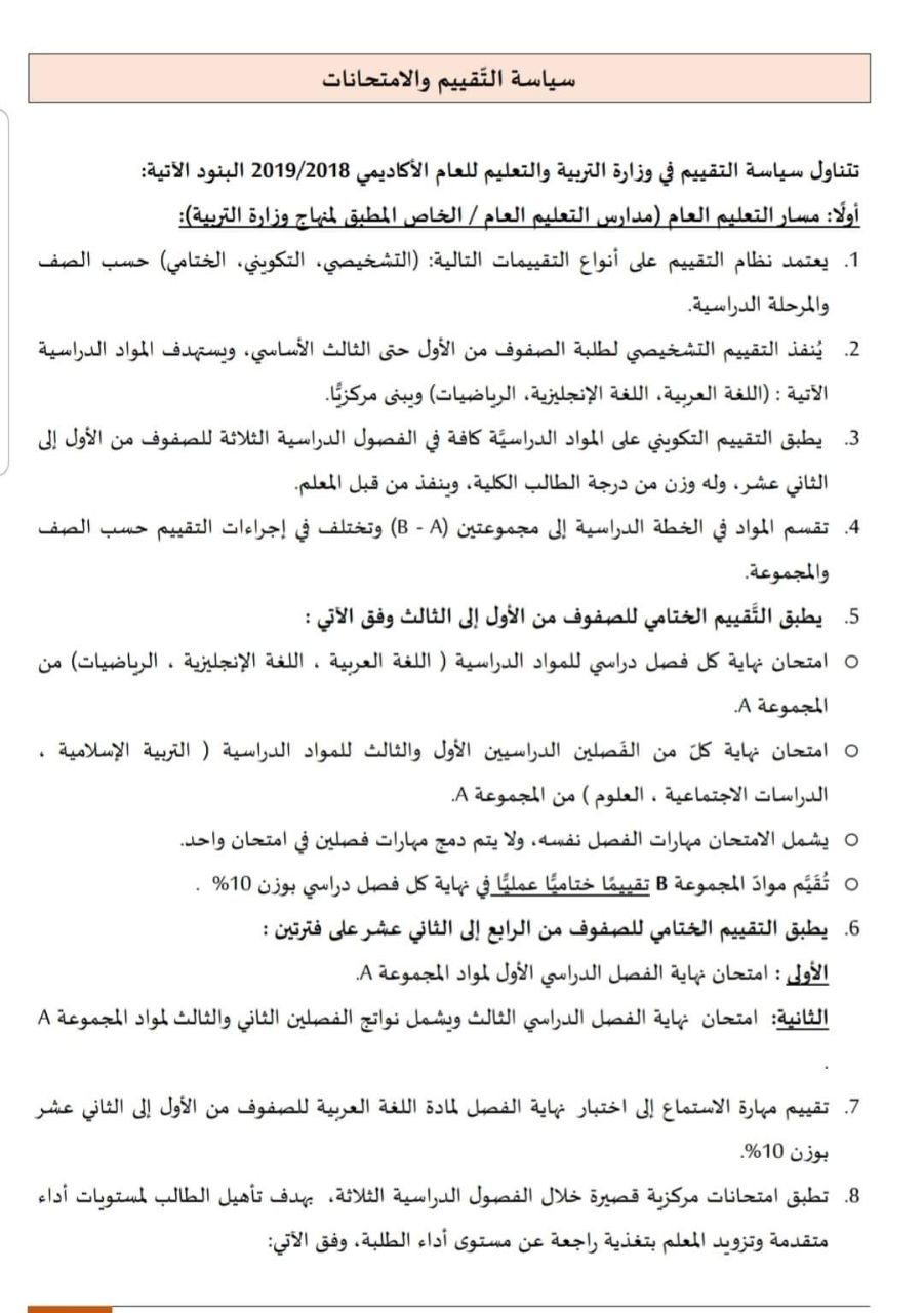 معلومات الملف: سياسة تقييم الامتحانات 2018-2019 | ||