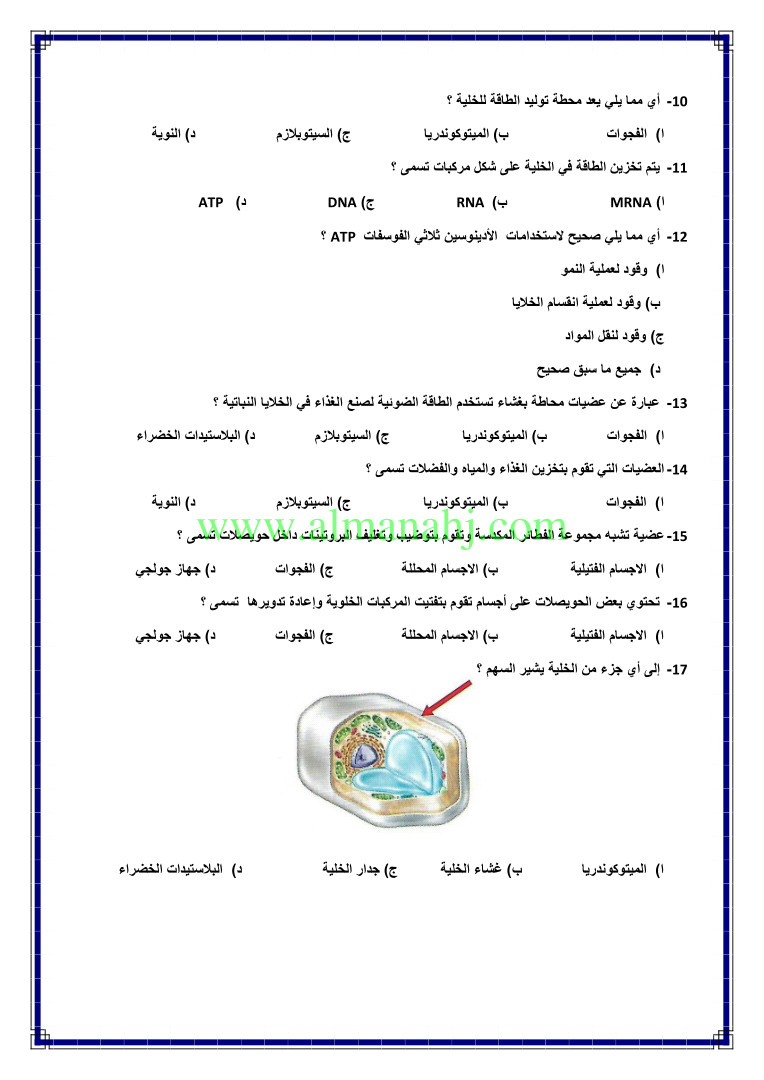 | السابق: الخلية والجزيئات الضخمة | الملف الحالي: 6912 | التالي: نموذج إجابة اختبار كتابي My Favourite Film فيلمي المفضل | |