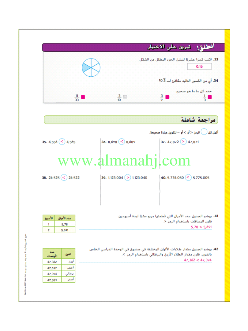 معلومات الملف: الصف السادس, الفصل الثاني, رياضيات, 2018-2019, الكسور العشرية المنتهية والدورية | |||