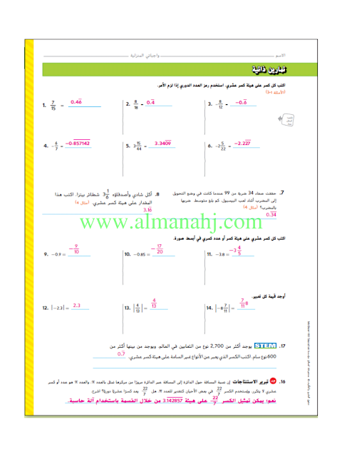 اضغط هنا لتحميل وعرض ( الكسور العشرية المنتهية والدورية ) |