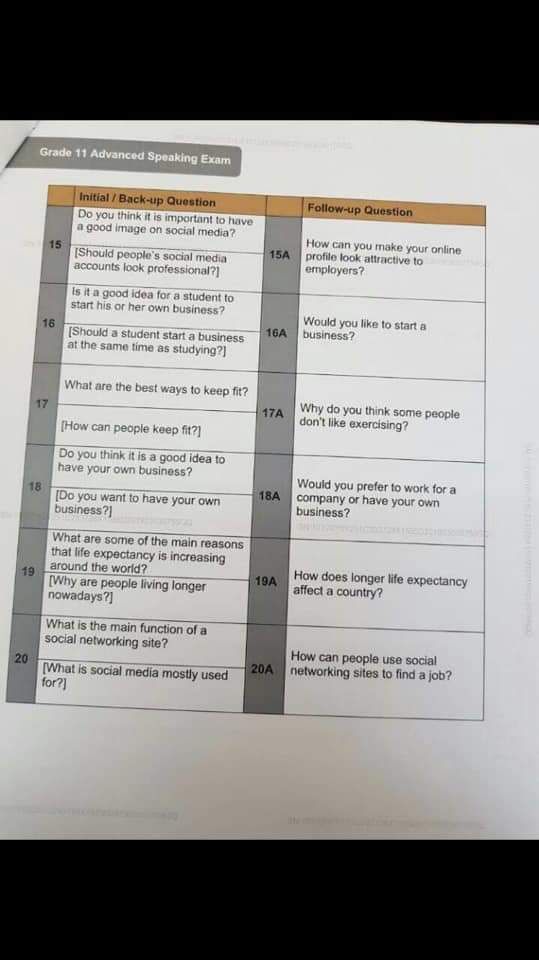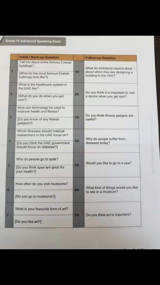 معلومات الملف: الصف الحادي عشر, الفصل الثاني, لغة انكليزية, 2018-2019, امتحانSpeaking | ||