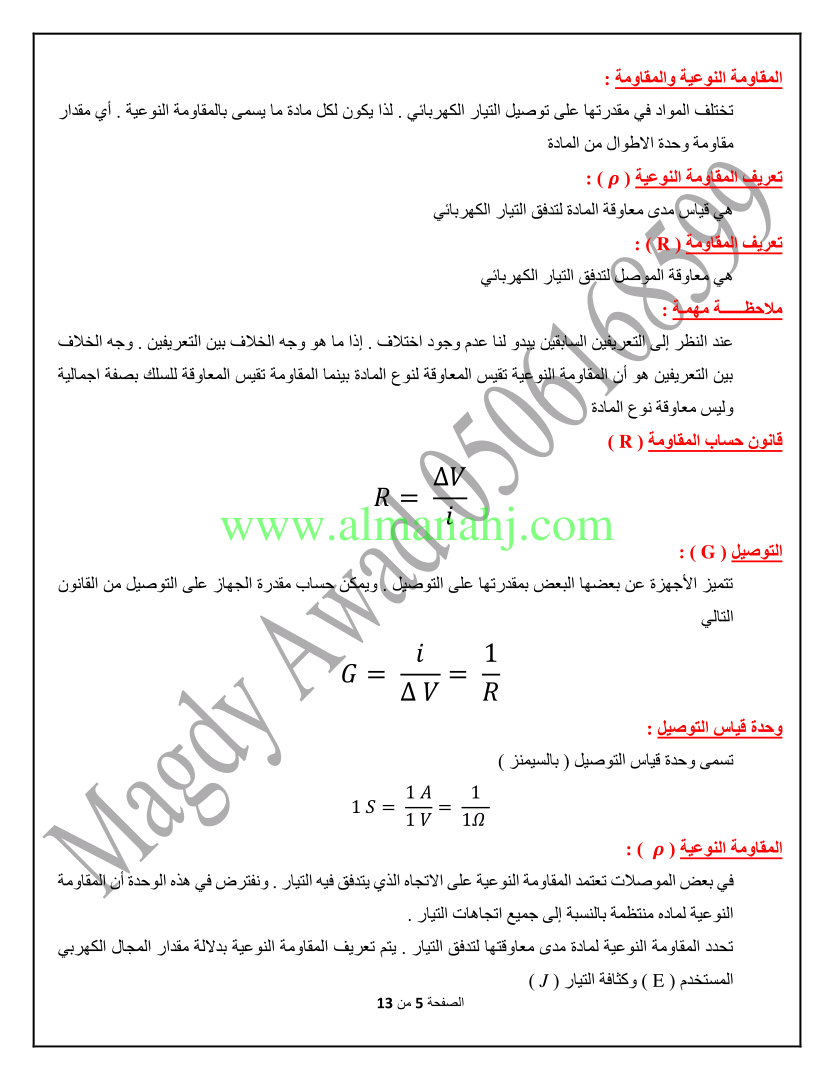 اضغط هنا لتحميل وعرض ( التيار والمقاومة ) |