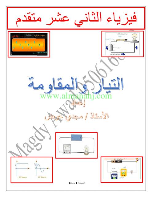 معلومات الملف: الصف الثاني عشر المتقدم, الفصل الثاني, فيزياء, 2018-2019, التيار والمقاومة | |||