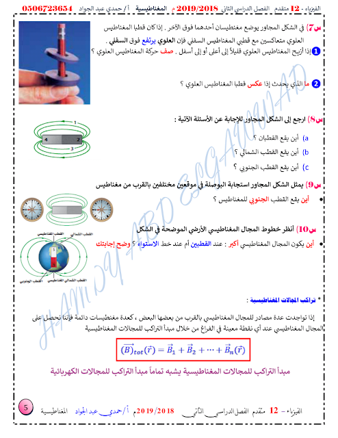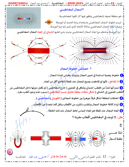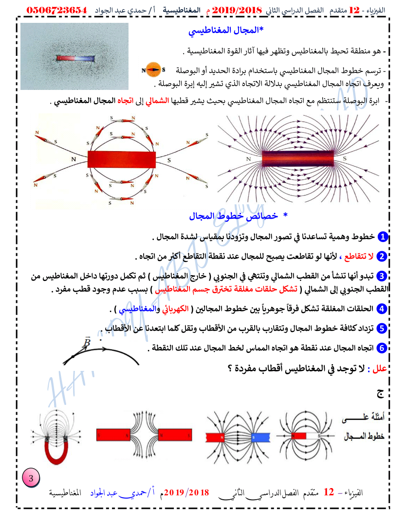 معلومات الملف: الصف الثاني عشر المتقدم, الفصل الثاني, فيزياء, 2018-2019, المغناطيسية | |||