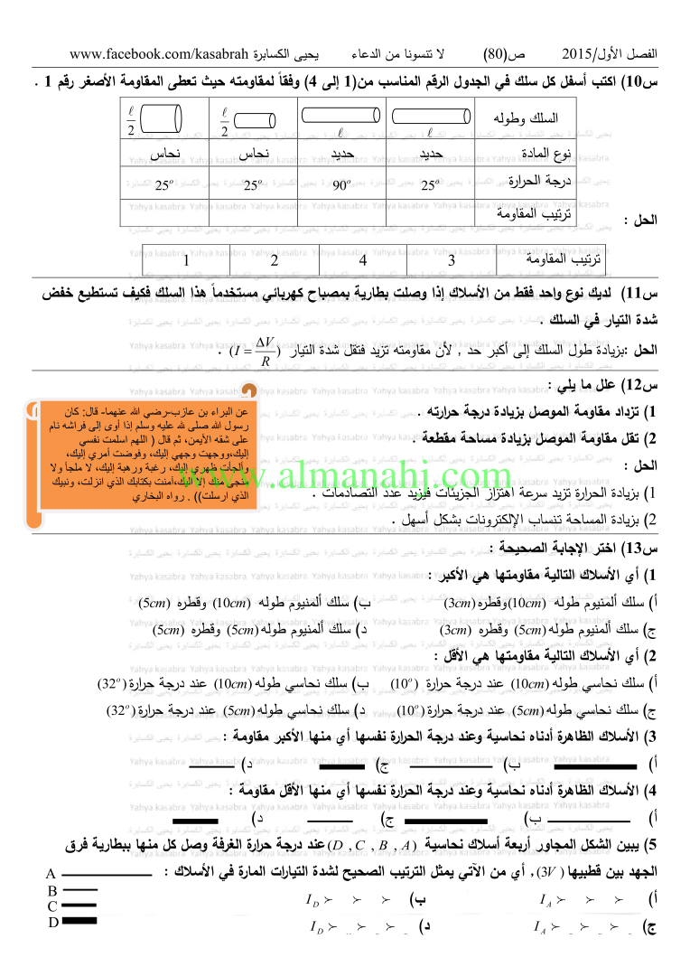 معلومات الملف: الصف الثاني عشر المتقدم, الفصل الثاني, فيزياء, 2018-2019, اوراق عمل التيار الكهربائية | |||