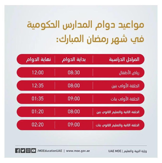 مواعيد دوام المدارس الحكومية في شهر رمضان المبارك | ||