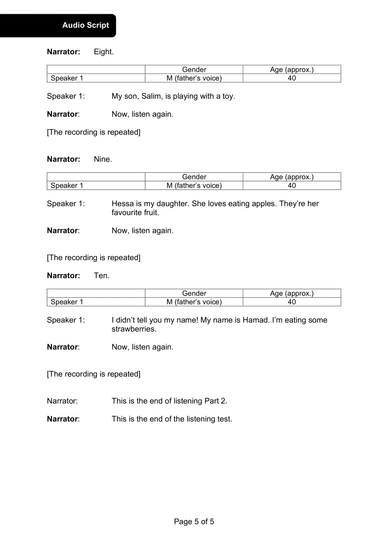 معلومات الملف: الصف الثاني, الفصل الثاني, لغة انكليزية, 2018-2019, اجابات الاستماع | |||