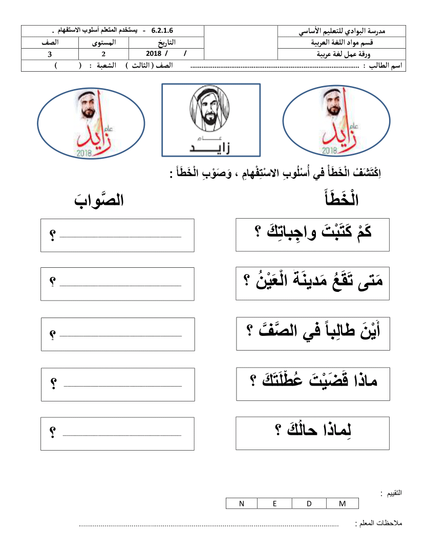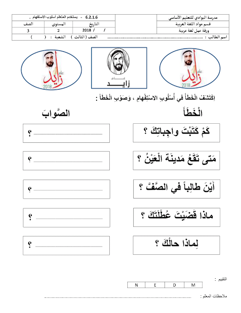 معلومات الملف: الصف الثالث, الفصل الثاني, لغة عربية, 2018-2019, اوراق عمل عربي | |||
