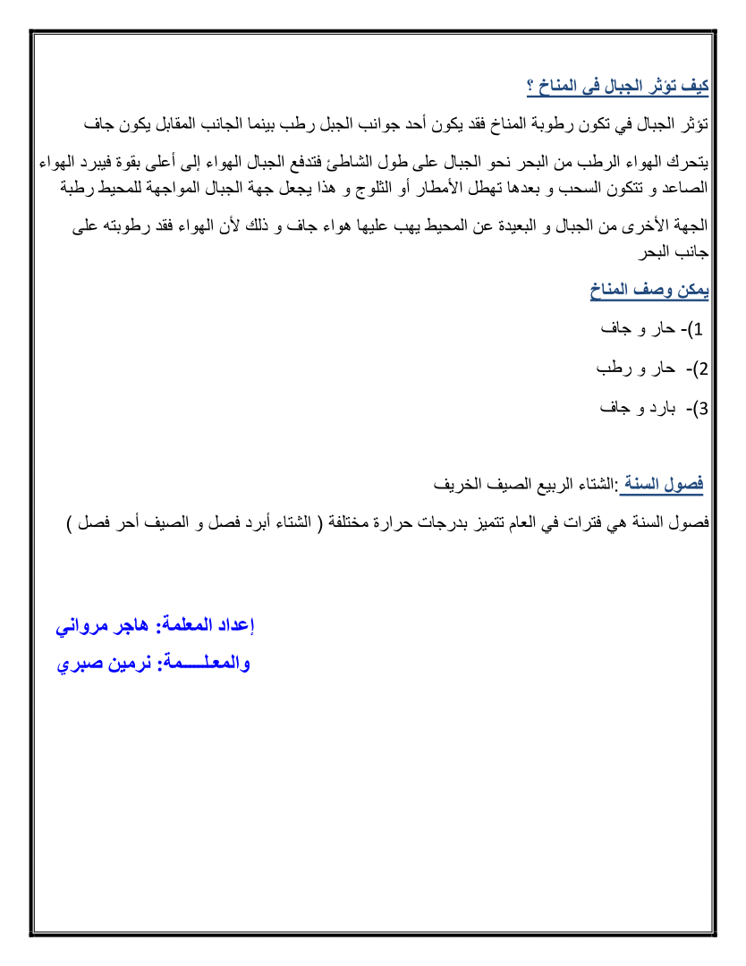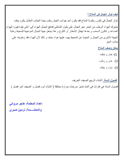 رابط تحميل وعرض ( ورقة عمل المناخ وفصول السنة ) | |||