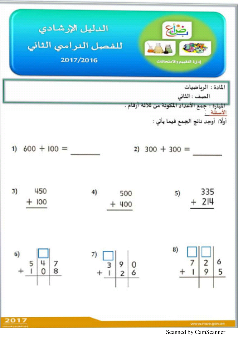 معلومات الملف: الصف الثاني, الفصل الثاني, رياضيات, 2018-2019, الدليل الارشادي للفصل الثاني 2016-2017 | |||