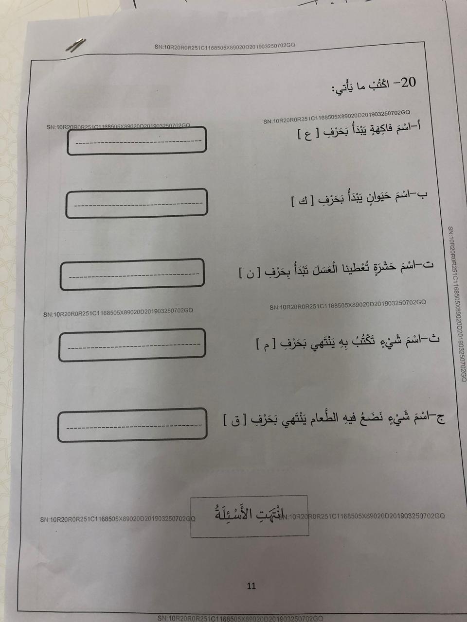 معلومات الملف: الصف الأول, الفصل الثاني, لغة عربية, 2018-2019, امتحان الفصل الثاني لعام 2018-2019 | |||