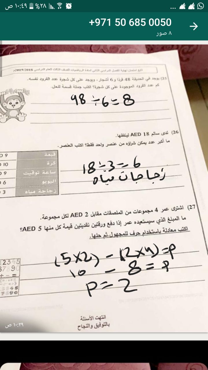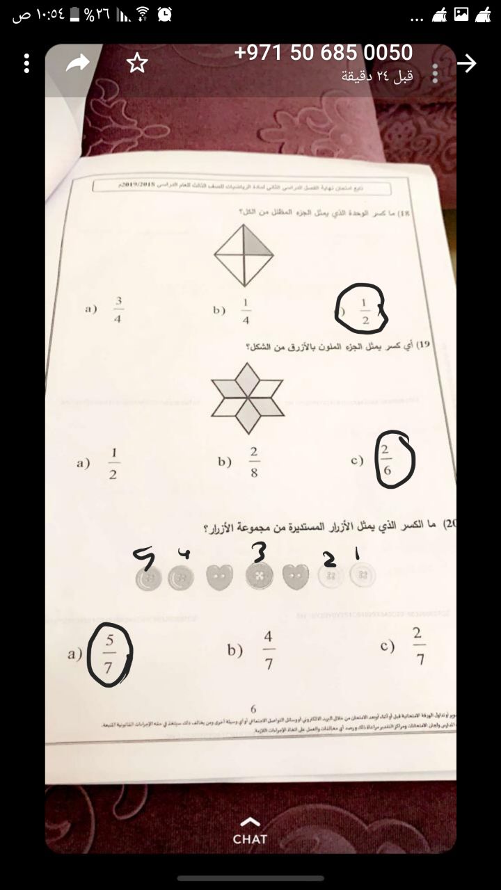 معلومات الملف: الصف الثالث, الفصل الثاني, رياضيات, 2018-2019, حل امتحان نهاية الفصل الثاني2018-2019 | |||