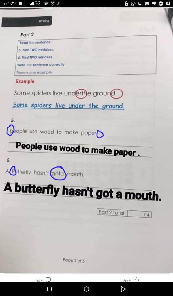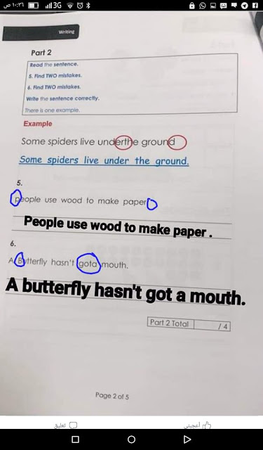 8. الصف الثاني, لغة انجليزية, أسئلة اختبار Writing task revision كتابة