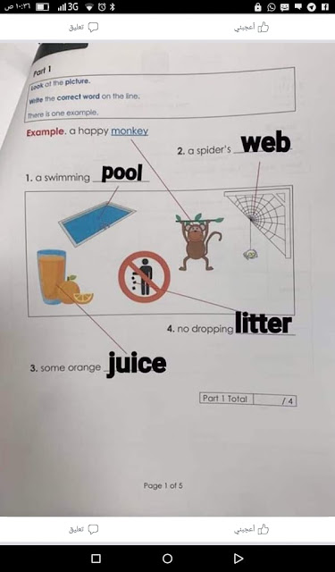 5. الصف الثاني, لغة عربية, أسئلة اختبار تقويم أول مدرسي