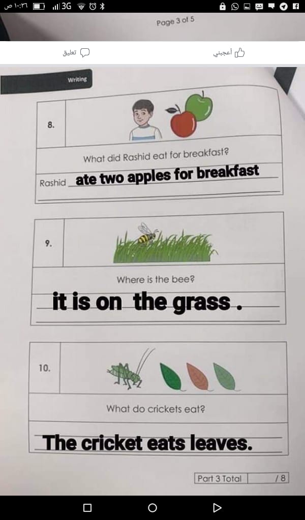 10. الصف الثاني, لغة انجليزية, أسئلة Practice test اختبار تدريبي متبوعة بالإجابات