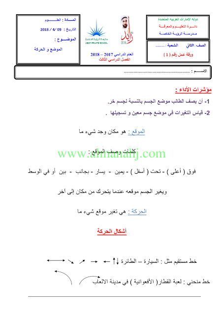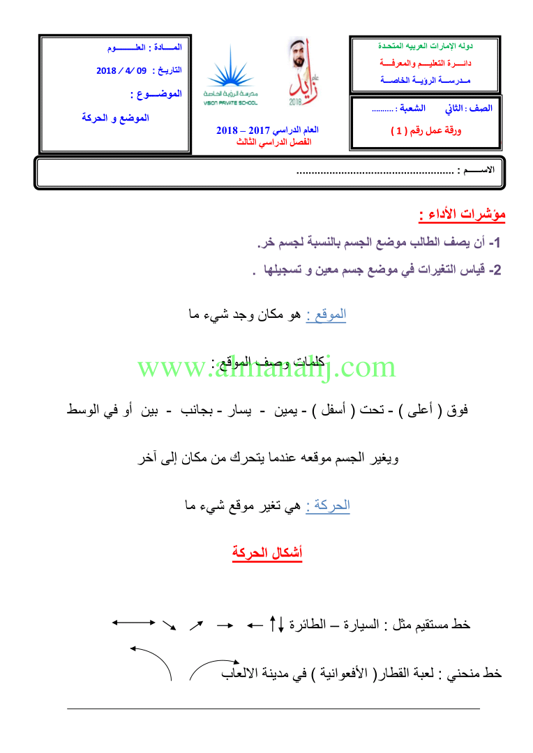 رابط تحميل وعرض ( ورقة عمل الموضع والحركة ) | |||