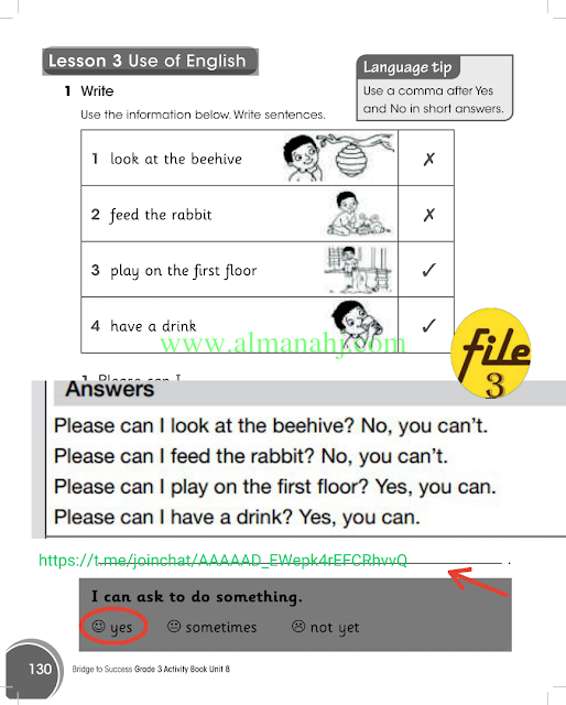 معلومات الملف: الصف الثالث, الفصل الثالث, لغة انكليزية, 2018-2019, حل uint 8  | |||