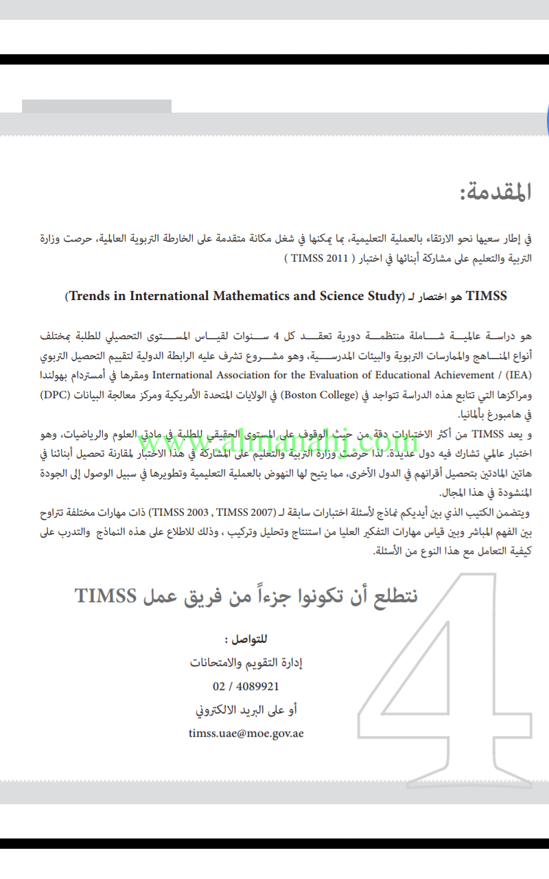 لصف الرابع رياضيات TIMSS تدريبات وزارية باللغة العربية | |||