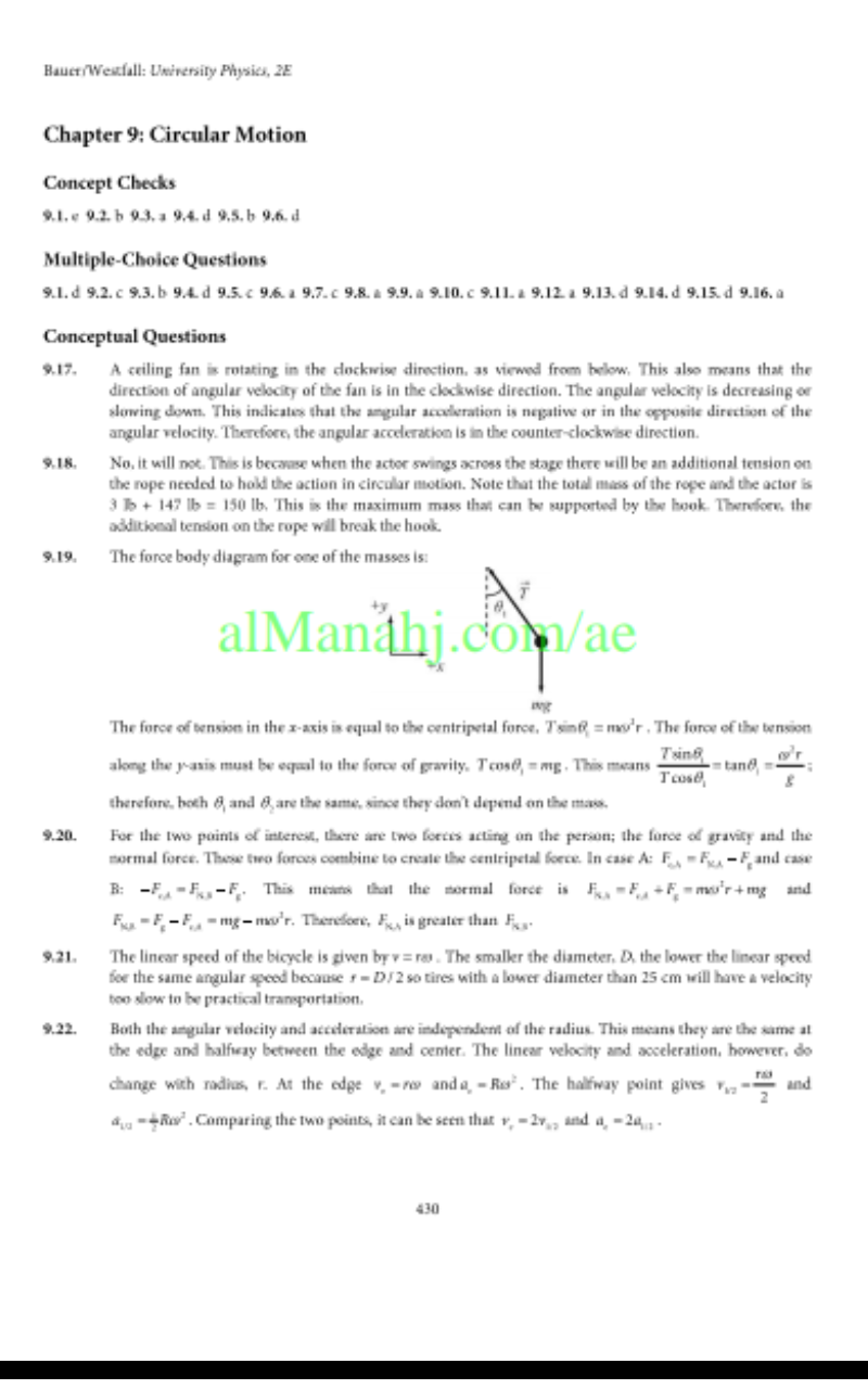 4. مراجعة الدرس السابع More Examples for Circular Motion من الوحدة التاسعة منهج انسباير