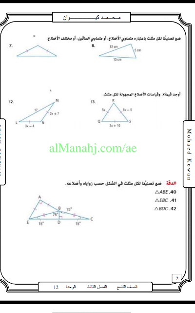 عامرياضياتالوحدة12تصنيفالمثلثاتملفثاني.pdf