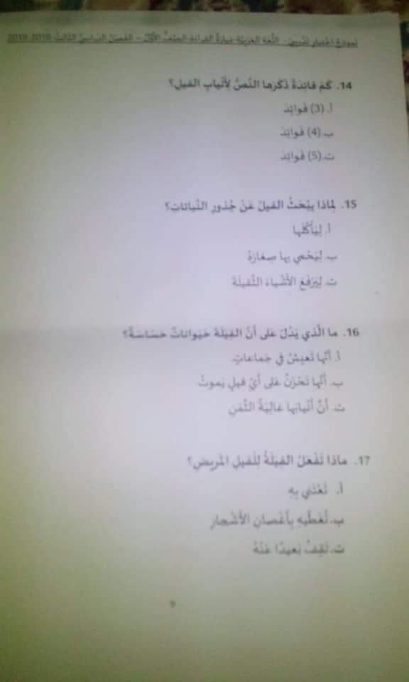 معلومات الملف: إليكمنموذجاختبار تدريبي رسمي للعام 2019في مادة اللغة العربية للصف الاول للفصل الثالث | ||