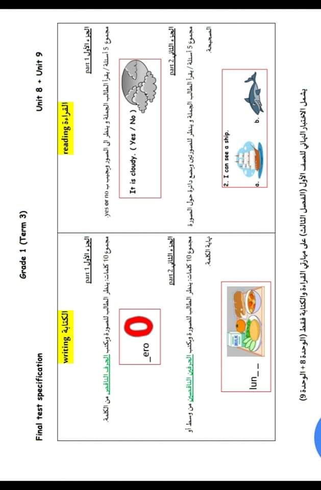 معلومات الملف: إليكم النموذج الوزاري في اللغة الإنجليزية للصف الأول للفصل الثالث | ||