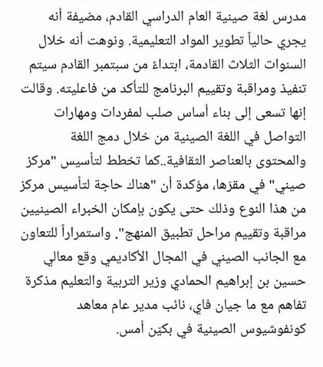 ذكرت وزارة التربية والتعليم أن تطبيق مناهج اللغة الصينية سيبدأ في سبتمبر المقبل في مدارس الدولة. وقالت "الوزارة" لوكالة أنباء الإمارات "وام" أن التطور التاريخي في العلاقات بين الدولتين الإمارات والصين أدى إلى نمو متزايد من الإماراتيين لتعزيم وفهم اللغة والثقافة الصينية. وأعلنت أن منهاج اللغة الصينية سيدرس ابتداء من العام الدراسي 2019/2020 كما أشارت الوزارة إلى أنها تخطط لاستقطاب 150مدري لغة صينية للعام الدراسي القادم. وتخطط لتأسيس "مركز صيني" في مقرها، مؤكدة أن "هناك حاجةلتأسيس مركز من هذا النوع وذلك حتى يكون بإمكام الخبراء الصينيين مراقبة وتقييم مراحل تطبيق المنهج". | ||