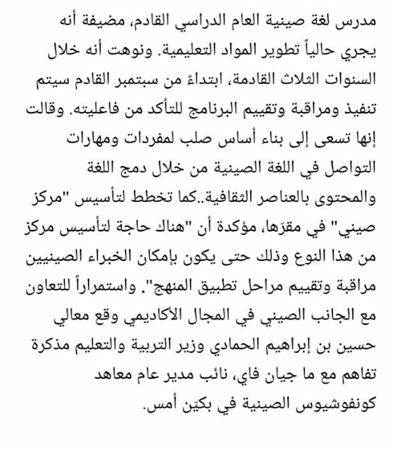 أخبار عن بداية تدريس اللغة الصينية في مدارس الإمارات, أخبار, التربية, الفصل الأول, 2018-2019 | ||