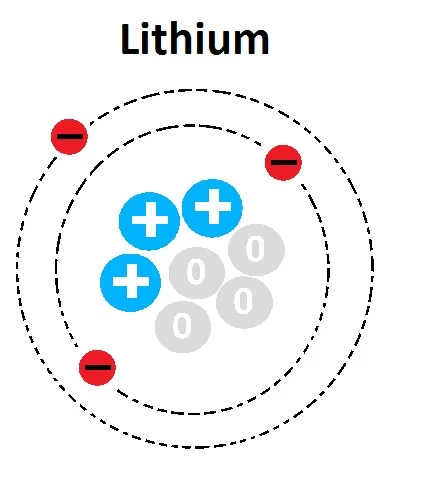 The atomic number is equal to the number of protons. The image of the nucleus contains 3 positively charged protons (+).