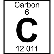 In the periodic table entry for Carbon, the number 6 is the atomic number, indicating the number of protons.