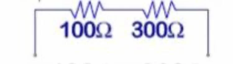 في دائرة التوالي، المقاومة المكافئة هي مجموع المقاومات: \( 100 + 300 = 400 \).