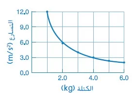 يوضح المنحنى أنه كلما زادت الكتلة قل التسارع، وهذا الشكل المنحني يمثل علاقة عكسية غير خطية.