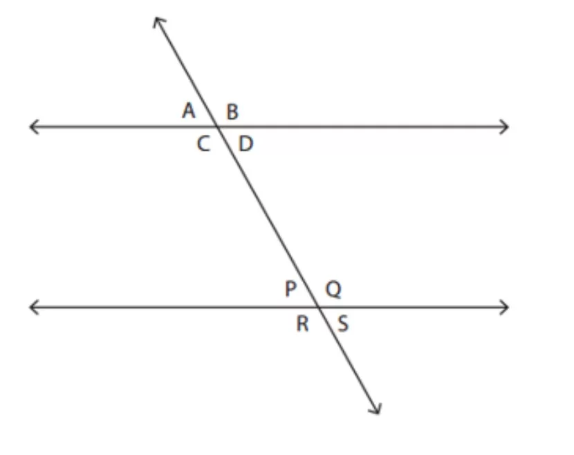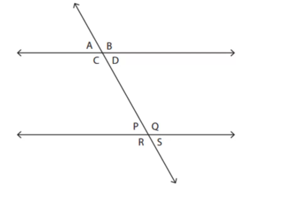Angle S and Angle A are outside the parallel lines and on opposite sides of the transversal line.