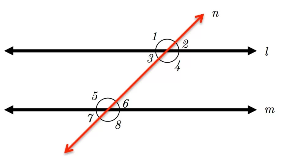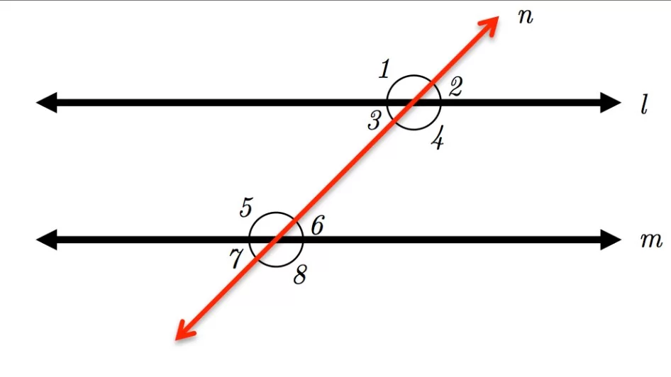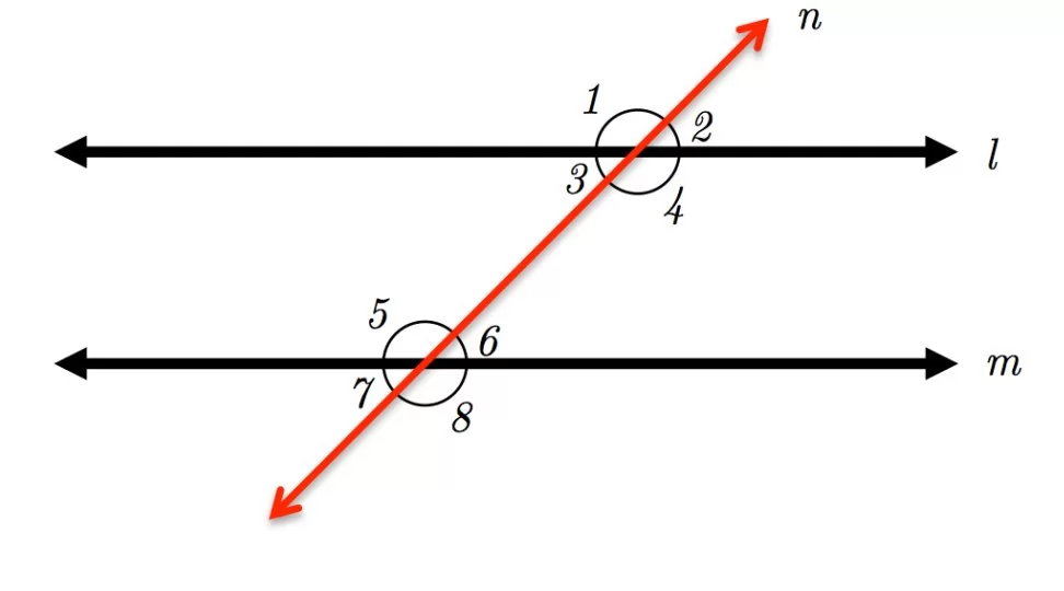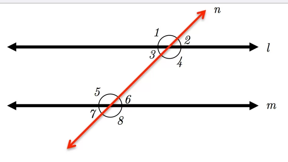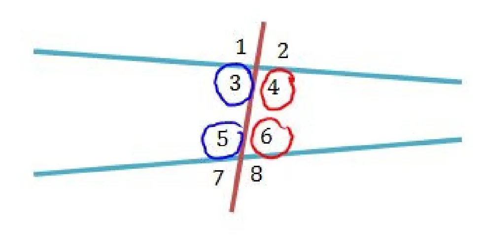 The circled angles (4 and 6) are located between the parallel lines and on the same side of the transversal.