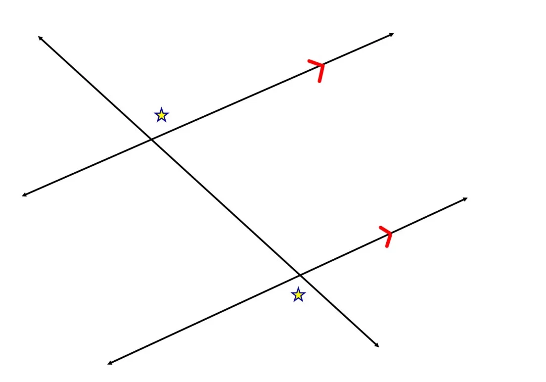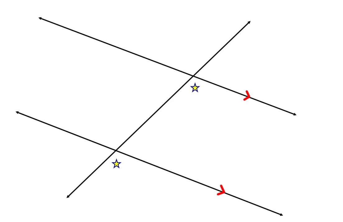 Two lines going the exact same way and will never intersect