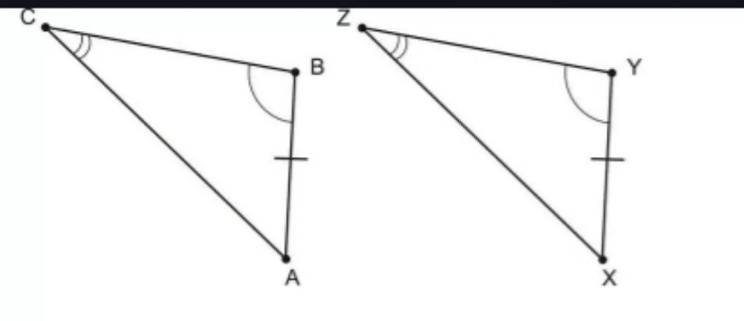 The diagram shows two pairs of congruent angles and one pair of congruent non-included sides, which corresponds to the Angle-Angle-Side (AAS) theorem.