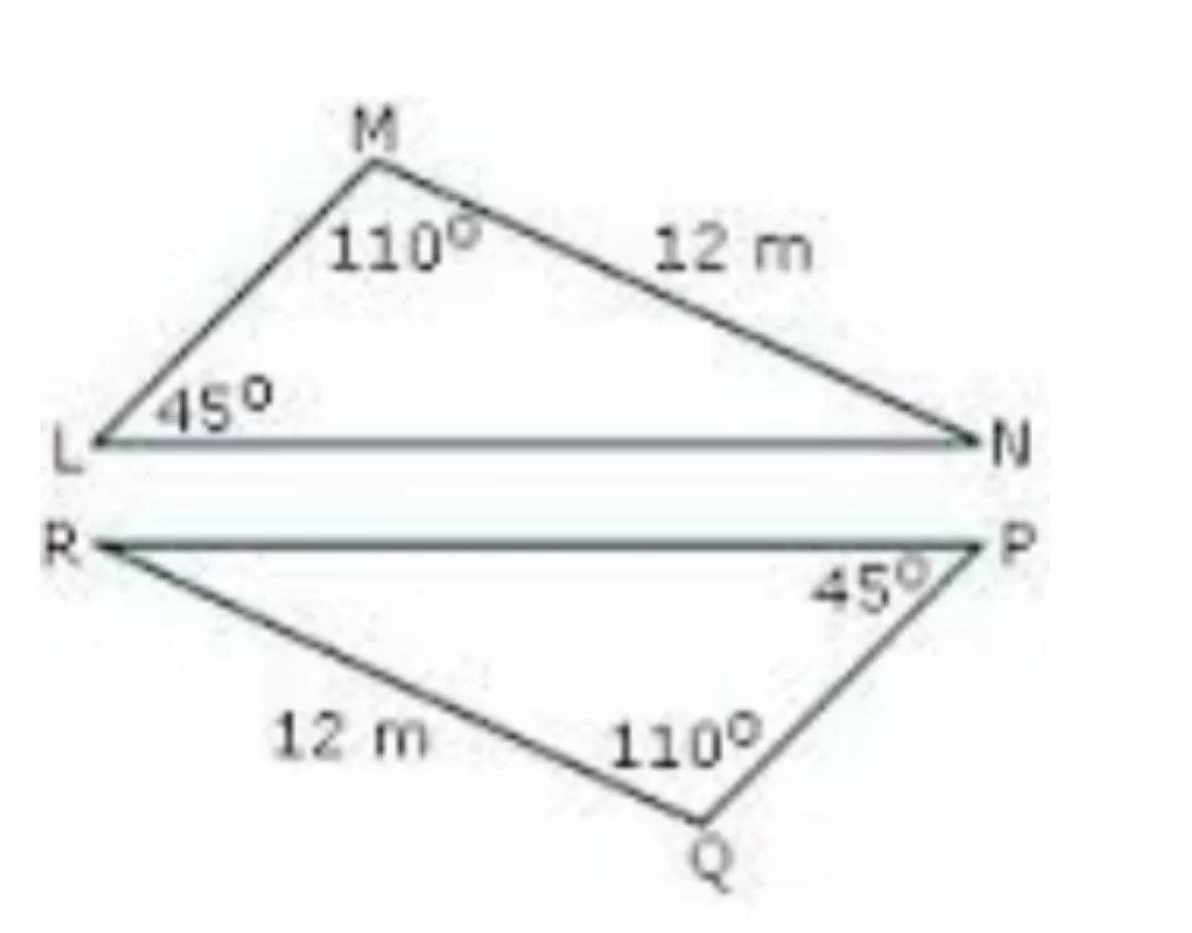 The triangles have two pairs of congruent angles and a non-included side of 12m, satisfying the Angle-Angle-Side (AAS) theorem.