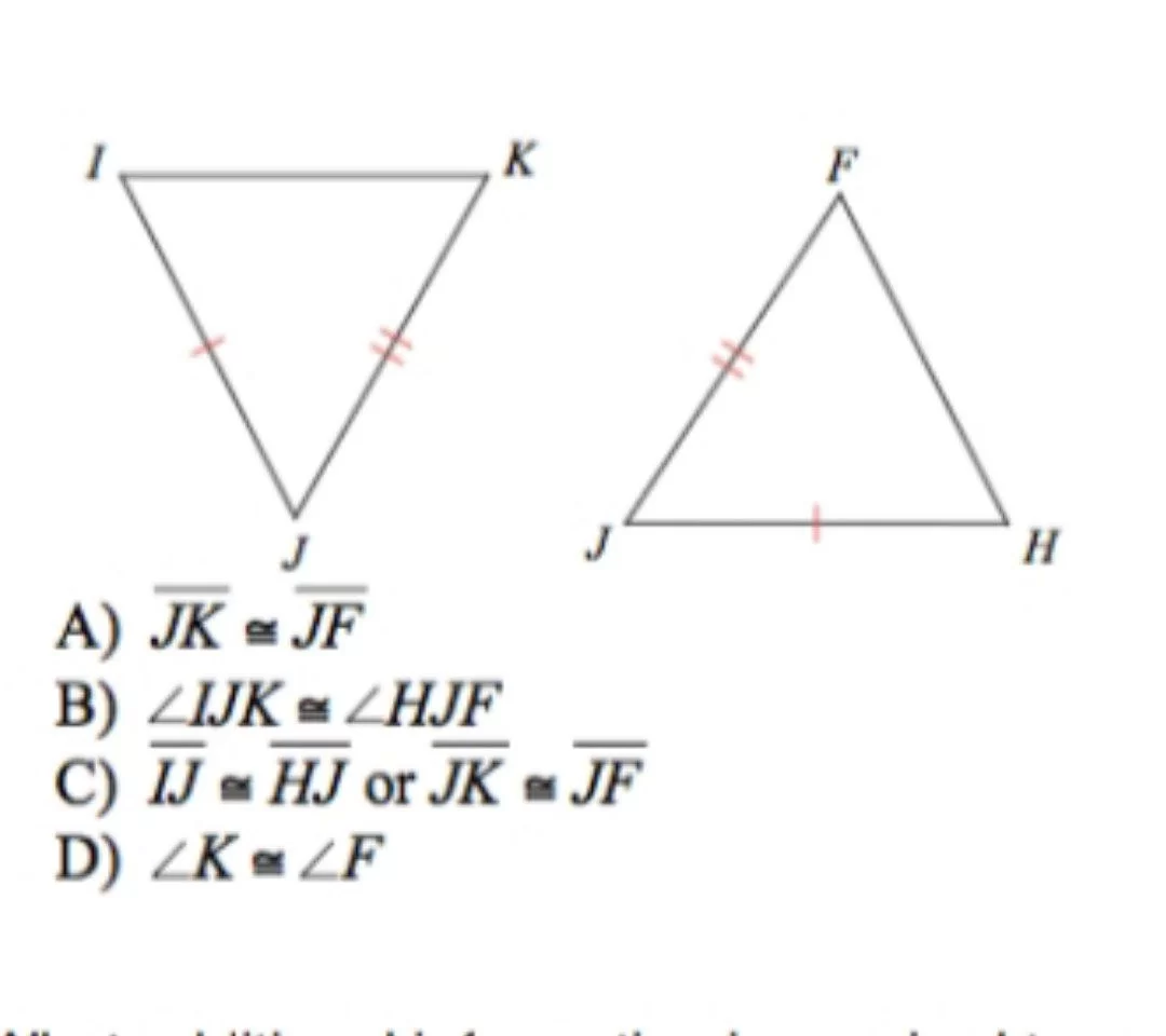 According to the provided answer key, this choice is required for the intended congruence proof.